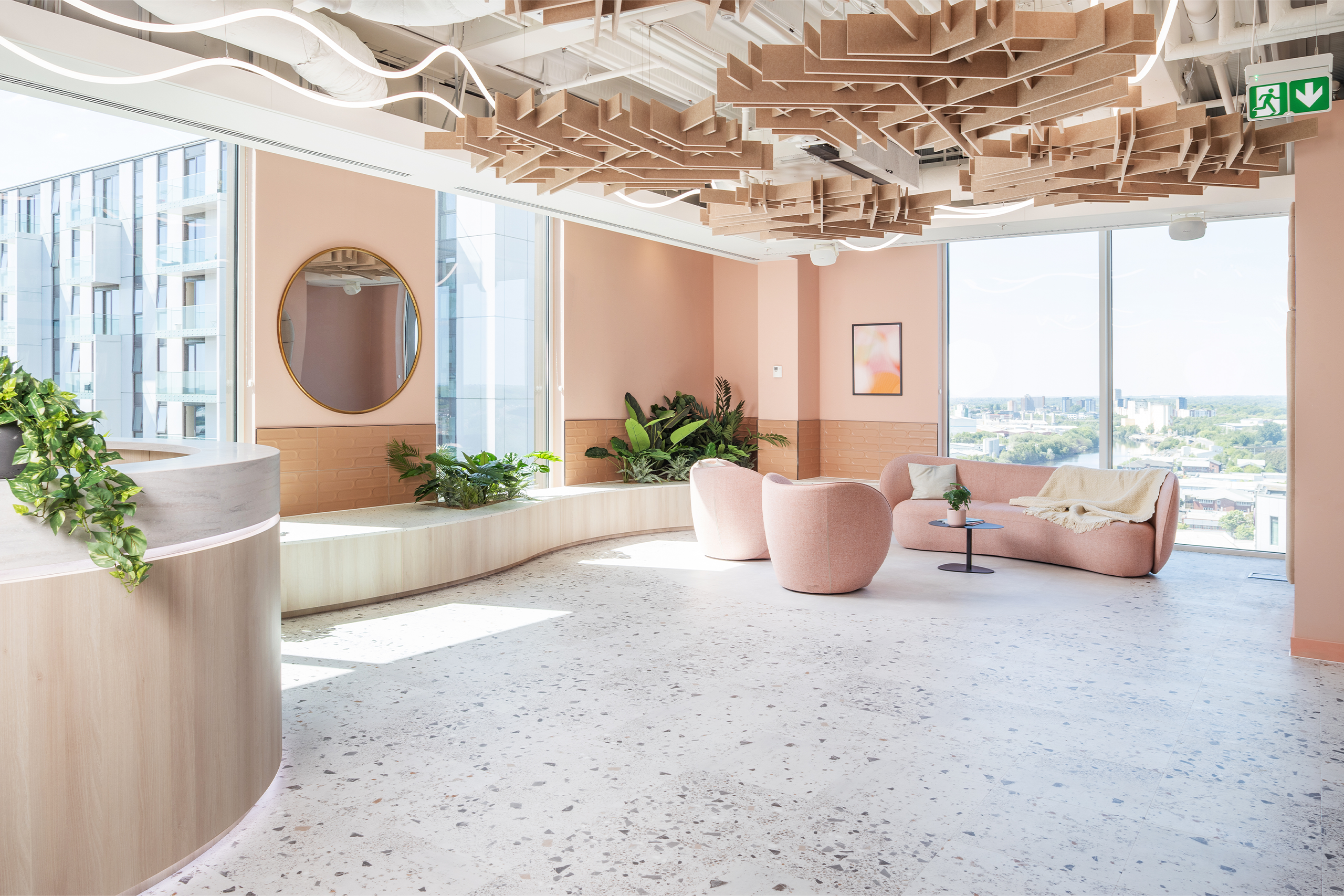 Leading design and build specialist Consensus Workspace has completed one of its most striking projects to date, transforming an 8,200 sqft space in Blue Tower at MediaCity into what has been hailed as “MediaCity’s prettiest office.” The eye-catching fit-out was delivered for leading real estate company Landsec, whose brief was to create a social media worthy aesthetic, while still delivering a conducive, collaborative workspace that would appeal to SMEs and Start Ups. Appointed as the principal design and build contractor, Consensus Workspace worked closely with the team at MediaCity to translate a bold, creative vision into a highly functional and aesthetic environment. With a focus on geometric design, natural light, and flexible working zones, the completed space reflects both MediaCity’s drive to stay at the forefront of serviced office design and their commitment to wellbeing and innovation for tenants. “MediaCity came to us with an ambitious brief – they wanted a space that didn’t just look beautiful but inspired tenants in the space,” said Andrew Plastow, Managing Director at Consensus Workspace. “By working collaboratively from concept through to completion, we’ve reinvented an environment that doesn’t just meet expectations – it elevates them.” Key features of the space include: Floor to ceiling windows with an uninterrupted view of Manchester’s Ship Canal and Salford’s green spaces, drenching the space in natural light. Iridescent vinyls on internal office windows, creating an uplifting, welcoming feel in hues of pinks and golds. A palette of pale pink, mint and terracotta, bringing natural harmony indoors. A blend of on-trend furnishings and geometric patterned wallpaper, giving the impression of a “Pinterest-worthy” home. Multi-functional zones designed for creative breakout, collaboration, and concentration. Statement ceiling features and textures that deliver instant visual impact. LED light installations that double as art as well as having functionality. The success of the project lies in Consensus Workspace’s integrated approach, combining architectural design, interior fit-out, project management, and delivery, all under one roof. This streamlined process allowed for agility and responsiveness throughout, ensuring the final space met MediaCity’s evolving needs without compromising quality or creativity. Rebekah Beere, Head of MediaCity’s Flex offering, praised the transformation: “This project is a testament to the exceptional vision of the team at MediaCity and design talent at Consensus Workspace to enable us to bring this vision to life. The result is a vibrant, forward-thinking space that supports hybrid working and wellbeing – it’s everything a modern creative SME or Start Up could ask for.” The new office space is located on the 12th Floor of MediaCity’s Blue Tower, and forms part of their Flex offering which is designed to support scale-ups, SMEs and creative professionals.